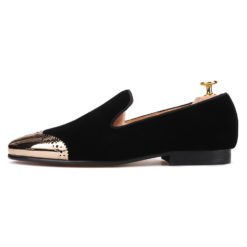 Get the newly handmade Black Velvet Gold Bullock Buckle shoes for your prom, graduation, and wedding event. Shop our latest collection of men velvet loafers from the most popular stores – all in one place.