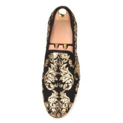 Get the newly handmade Gold Loafer Creative Prints Taetae Flat shoes for your prom, graduation, and wedding event. Shop the latest collection of men black velvet shoes from the most popular stores – all in one place.